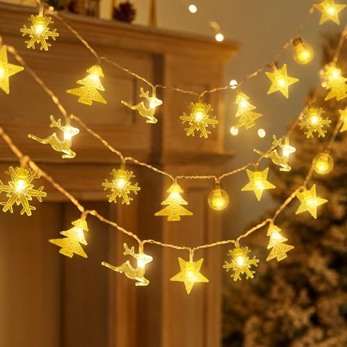 TOLOYE Luci Natalizie Decorative, 20 ft 40 LED Luci Natalizie a Stringa,Luci Bianco Caldo, Impermeabili, Festa di Natale, Luci lampeggianti per Natale Decorazione