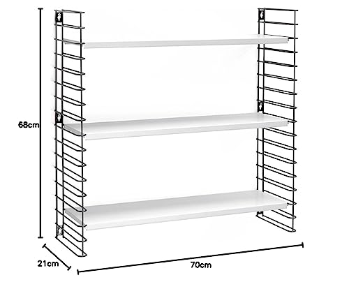 Telaio e ripiani in metallo verniciato a polvere, con fissaggio a parete