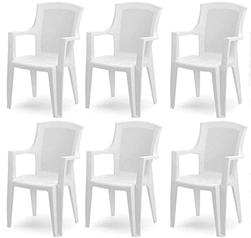 Tomaino - Set di Sedie da Giardino Impilabili, Sedie Effetto Rattan, Sedie da Esterno in Plastica - 6 pz (Bianco)