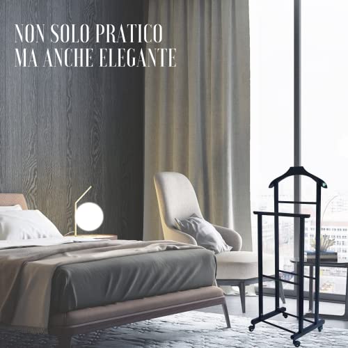 Tomaino - Servo Muto Da Camera In Legno Di Faggio - Appendiabiti Indossatore Da Camera Con Rotelle - Ambrogio
