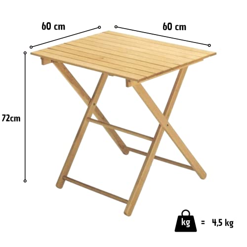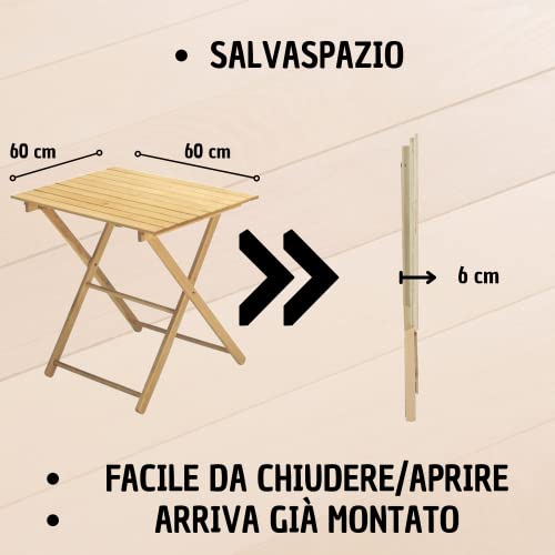 Tomaino - Tavolo Pieghevole Salvaspazio In Legno Quadrato - Uso Da Interno Ed Esterno - Tavolino Campeggio, Balcone, Cucina, Pratico Poratile 60x60cm