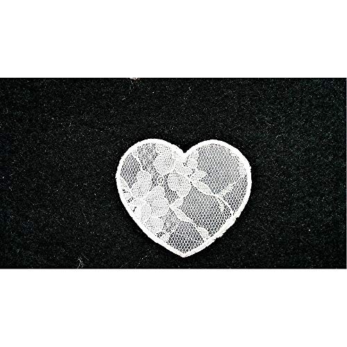 TOMASELLI MERCERIA Applicazione Termoadesiva Ricamata Patch Marbet Pizzo Tinta Unita Cuore 55x50 Mm - Bianco