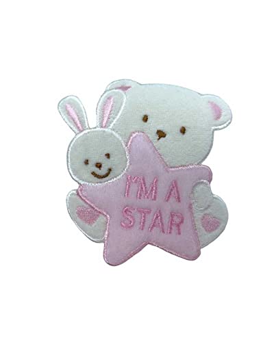 TOMASELLI MERCERIA Applicazione Termoadesiva Ricamo Patch marbet Baby Velluto Orsetto Coniglietto Stella I'ma Star 80x75 Mm - Rosa