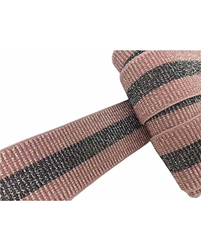 TOMASELLI MERCERIA 50 Cm Passamaneria Elastico Lurex Rigato Gros Grain Alto 4 Cm - Rosa