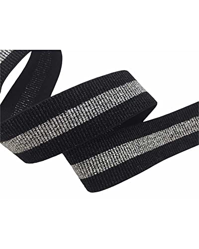 TOMASELLI MERCERIA 50 Cm Passamaneria Elastico Lurex Rigato Gros Grain Alto 4 Cm - Nero