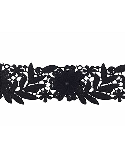 TOMASELLI MERCERIA 50 Cm Passamaneria Macrame Pizzo Ricamato Ritagliabile Perla Alto 55 Mm - Nero