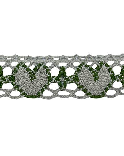 TOMASELLI MERCERIA Passamaneria Merletto Shabby Cotone Pizzo Cuore Alto 2,5 Cm - Verde