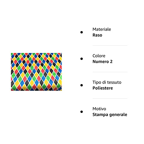 TOMASELLI MERCERIA Tessuto Raso Carnevale Stampato arlecchino Grande e Piccolo Alto 150 cm - Numero 2