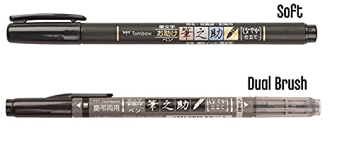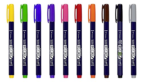 Tombow Brush Pen Fudenosuke 10 pezzi + punta morbida nera + Dual Brush Pen Grigio