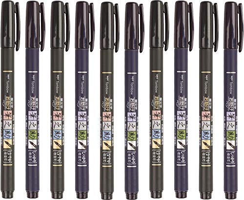 Tombow Fudenosuke Pennelli a punta morbida e dura, confezione da 10 pezzi, nero (5 punte morbide e 5 x dure)