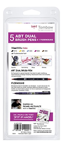 Set matite di sua preferito: per un ABT Dual Brush Pen N15 Black, 025 lightorange, 533 peacockblue, 665 Purple, 969 Chocolate + un fuden osuke duro