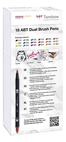 Tombow - 18 pennarelli (colori secondari) Dual Brush Pen con doppia punta + pennarello Fudenosuke duro e morbido - colori acquerellabili ad acqua atossici inodore