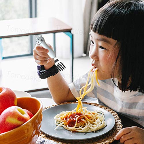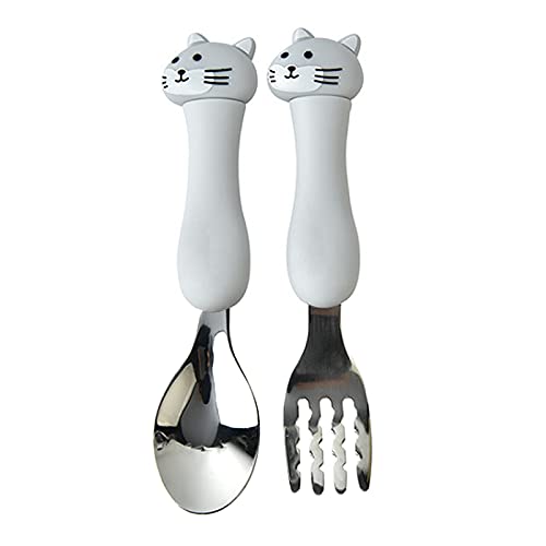 Tomedeks Set di 1 Posate per Bambini in Acciaio Inossidabile, Set di forchette e cucchiai, con Animali dei Cartoni Animati con Scatola (Cat)