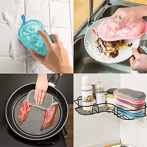 Tomkity 6pz Microfibra Spugnette da Cucina Antibatterico + Gancio di Aspirazione 2 Lati Diversi Spugne Paglietta Ideale per Casseruole Pentole