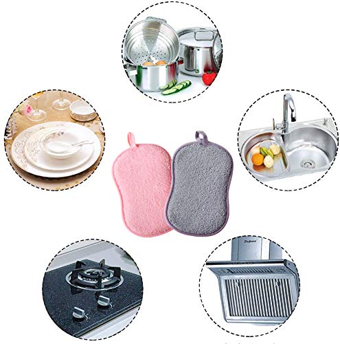 2 lati diversi: un lato è in microfibra, l'altro è uno scrub non abrasivo. Non solo può pulire e pulire, ma anche rimuovere residui di cibo e incrostazioni di sporco. È perfetto per stoviglie antiaderenti e prive di graffi.