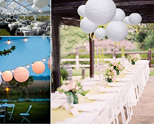 Tomkity 20 Pezzi 4 Dimensioni Bianco Lanterne di Carta Rotonde per Festa di Nozze Decorazioni