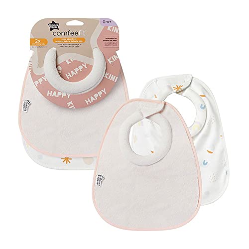 Tommee Tippee Happy Kind - Bavaglini per l'alimentazione del latte, super morbidi ed extra assorbenti, regolabili e reversibili, in materiale approvato Oexo-tex, confezione da 2