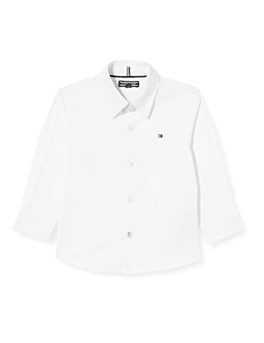 Tommy Hilfiger Boys Solid Stretch Poplin Shirt L/S Camicia, Bianco (Bright White 123), 92 Bambino