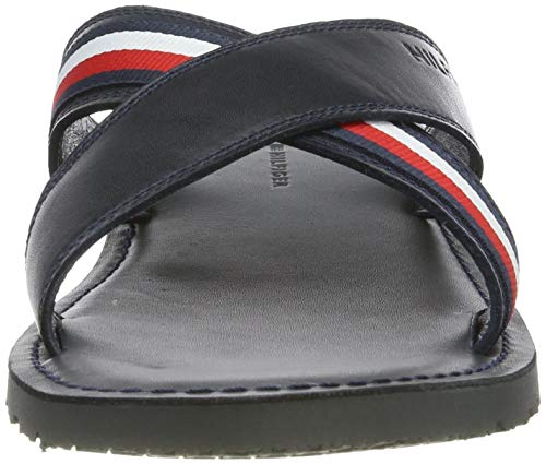 Tommy Hilfiger Criss Cross Leather Sandal, Punta Aperta Uomo, Blu (Midnight 403), 43 EU