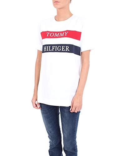 Tommy Hilfiger Da Donna Cotone Biologico lula Crew Collo t-Shirt Bianco XS