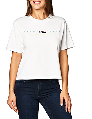 Tommy Hilfiger Jeans Boxy Crop Modern Logo Tee T-Shirt Donna DW0DW09923 YBR White (L)