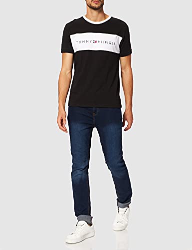 Tommy Hilfiger CN SS Tee Logo Flag T-Shirt, Black, M Uomo