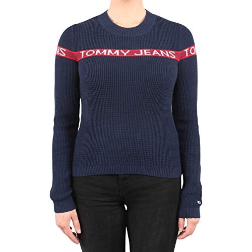 Tommy Hilfiger Tjw Tommy Logo Stripe Sweater Felpa, (Blue Cbk), Large Donna