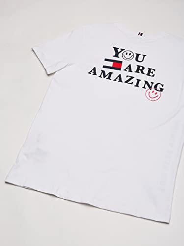 Tommy Hilfiger - Maglietta da maniche corte in colore bianco KB0KB0KB07442 - Maglietta per bambino, bianco, 12 anni
