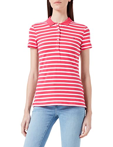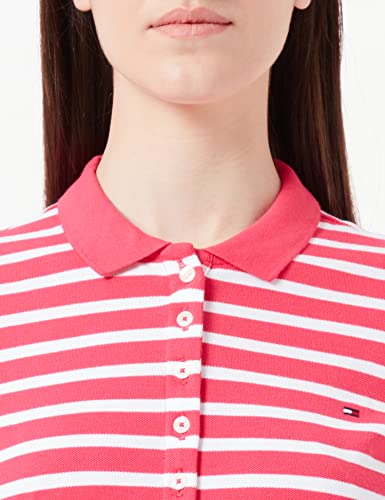 Tommy Hilfiger Polo a Maniche Corte Slim Stripe, Breton STP/P Splendor White, S Donna