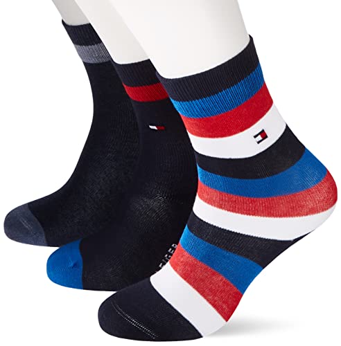 Tommy Hilfiger Stripe Sock 6 Pack Confezione da 6 Paia di Calzini a Righe Basic Ecom, Black/Jeans/Midnight Blue, 035 Ragazzi