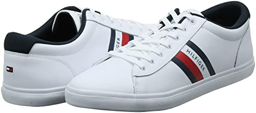 Tommy Hilfiger Strisce Vulc in Pelle Essenziale, Scarpe da Ginnastica Uomo, Bianco, 42 EU