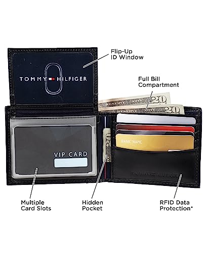 Capacità di archiviazione: questo portafoglio bifold Tommy Hilfiger Passcase offre due tasche e sei scomparti per carte di credito