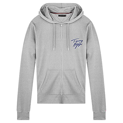 Tommy Hilfiger Uomo Felpa con Cappuccio e Zip Lounge, Grigio, S