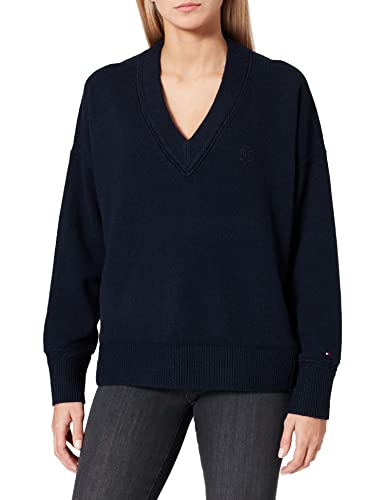Tommy Hilfiger Wool Blend V-NK Sweater Maglione, Desert Sky, M Donna