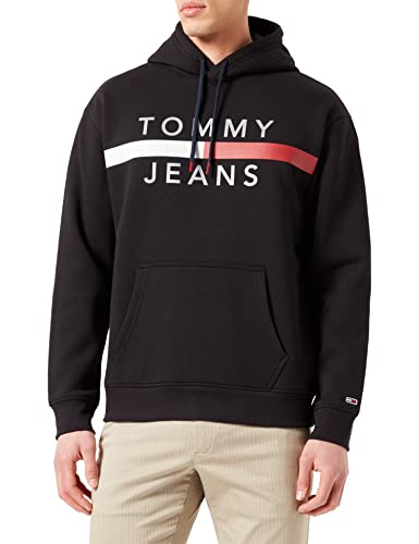 Tommy Jeans Felpa con Cappuccio con Bandiera Riflettente Tjm Maglia di Tuta, Black, XXL Uomo