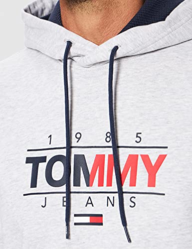 Tommy Jeans Felpa con Cappuccio Tjm Essential con Grafica, Silver Grey Htr, XL Uomo