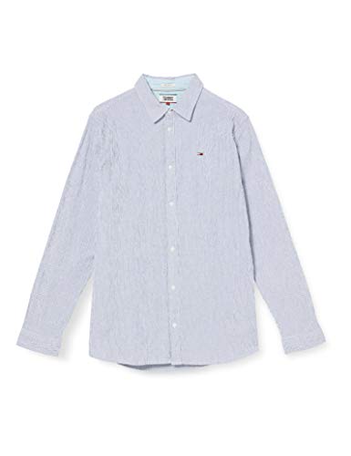 Tommy Jeans Flag Patch Seersucker Stripe Camicia, Twilight Navy/Multi, Medium Uomo