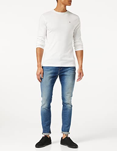 Tommy Jeans Original Rib Maglietta a Maniche Lunghe, Bianco (Classic White 100), L Uomo
