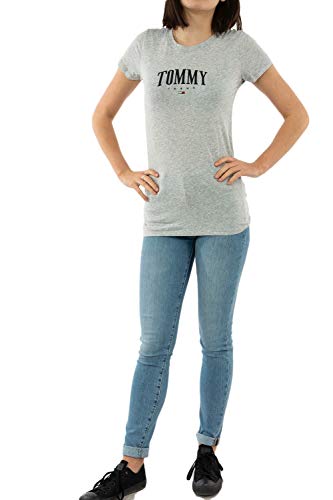 Tommy Jeans Tjw Tommy Script Tee T-Shirt, Grigio (Light Grey Htr P), 36 (Taglia Unica: XX-Small) Donna
