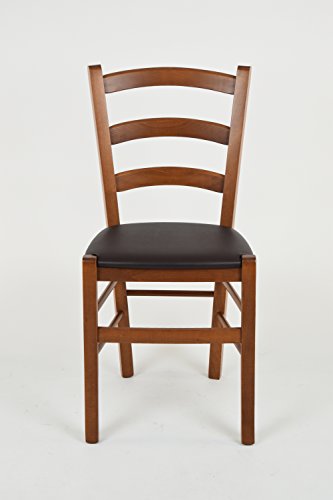 T m c s Tommychairs - Sedia modello Venice per cucina bar e sala da pranzo, robusta struttura in legno di faggio color noce e seduta rivestita in pelle artificiale colore moka