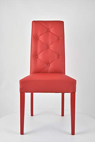 T m c s Tommychairs - Set 4 sedie Chantal per Cucina e Sala da Pranzo, Struttura in Legno di faggio Verniciata Rossa, Seduta e Schienale con Bottoni Imbottiti e Rivestiti in Pelle Artificiale Rossa