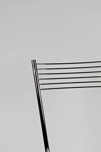 MATERIALE: resistente struttura in acciaio, seduta imbottita e rivestita in finta pelle. DIMENSIONI: altezza totale 87 cm, larghezza totale della sedia 42 cm, profondità totale della sedia 45 cm, profondità della seduta 38 cm, altezza della seduta 46 cm. Dal momento che è un prodotto artigianale, le misure possono variare leggermente. PORTATA: max. 90 kg con peso uniformemente distribuito sul sedile.