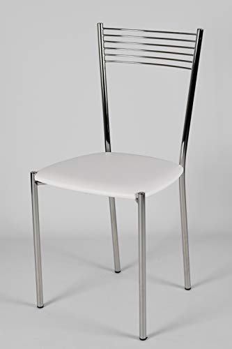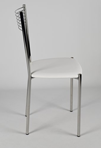 T m c s Tommychairs - Set 4 sedie modello Elegance per cucina bar e sala da pranzo, struttura in acciaio cromato e seduta imbottita e rivestita in pelle artificiale colore bianco