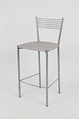 T m c s Tommychairs - Set 4 sgabelli alti modello Elegance per cucina e bar, struttura in acciaio verniciata colore alluminio e seduta imbottita e rivestita in pelle artificiale colore grigio chiaro
