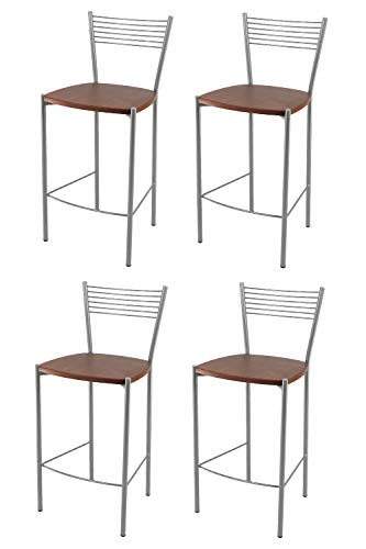T m c s Tommychairs - Set 4 sgabelli alti modello Elegance per cucina e bar, struttura in acciaio verniciata colore alluminio e seduta in legno colore ciliegio