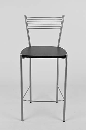 T m c s Tommychairs - Set 4 sgabelli alti modello Elegance per cucina e bar, struttura in acciaio verniciata colore alluminio e seduta in legno colore wengè