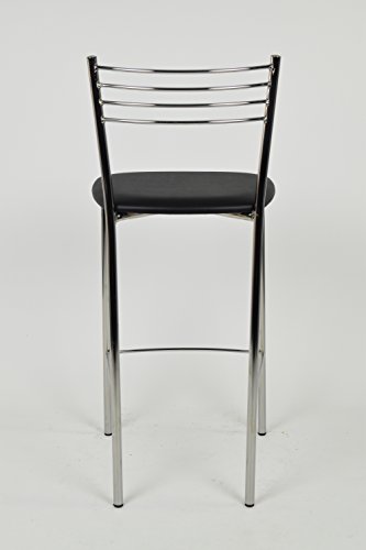T m c s Tommychairs - Set 4 sgabelli alti modello Elena per cucina e bar, struttura in acciaio cromato e seduta imbottita e rivestita in pelle artificiale colore nero