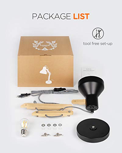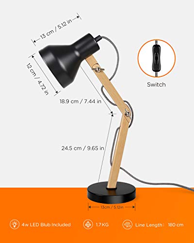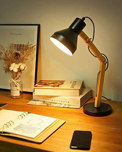Tomons Lampada stile scandinavo da Tavolino - Design in Legno Braccio pieghevole - Lampada da Scrivania a Led nero da Lettura per Studio e per Ufficio, Luce da Comodino.