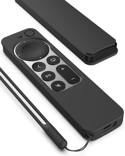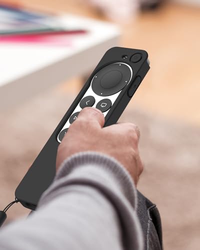 K TOMOTO Compatibile con Apple TV 4K Siri Remote Case 2021, cover protettiva in silicone antiscivolo setosa per telecomando Siri di seconda generazione [cordino incluso], nero