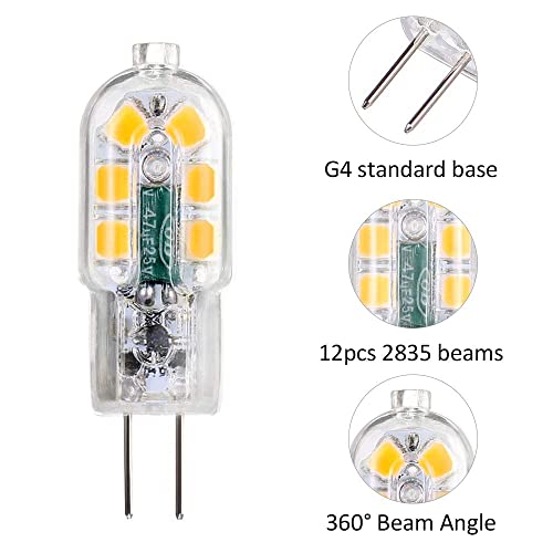 Tomshin Lampadine LED G4 12V G4 con lampeggiamento non regolabile [classe energetica A ++] Confezione da 12 Bianco caldo